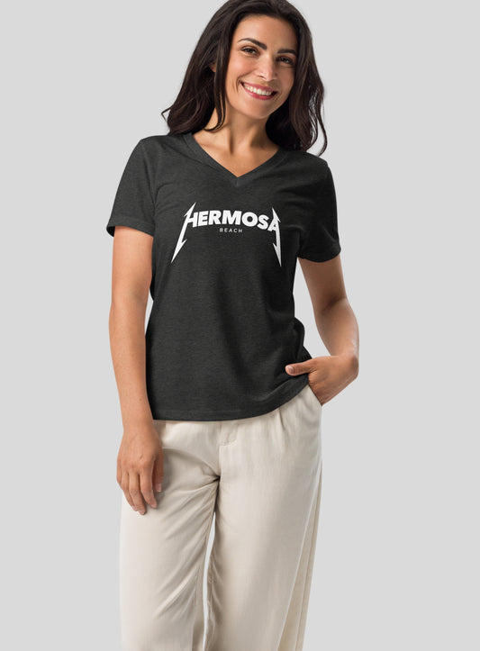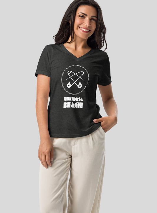 V-Neck: Hermosa Beach Punk Rock Tee - Dark Grey Heather