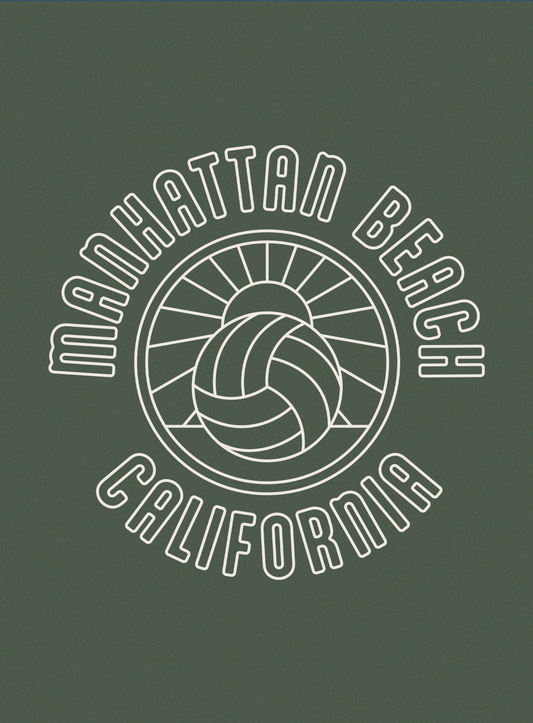 Unisex: Manhattan Beach Volleyball Sunset Tee - Heather Forest