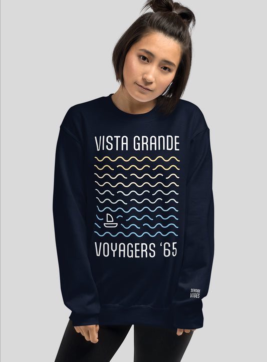 Unisex: Vista Grande Waves Crew Neck Sweatshirt - Navy