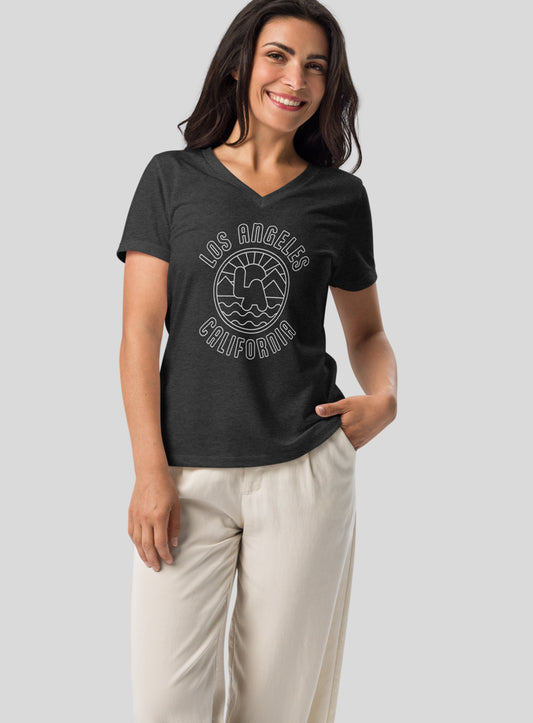 V-Neck: Los Angeles Sunrise Tee - Dark Grey Heather