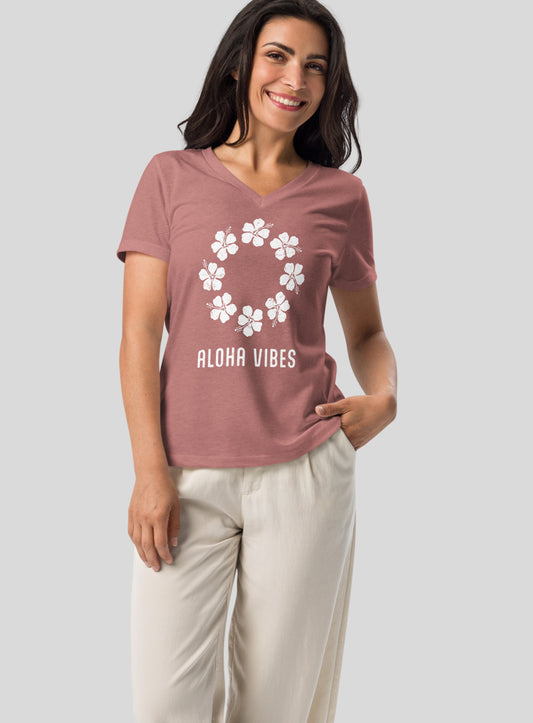 V-Neck: Aloha Vibes Tee - Heather Mauve