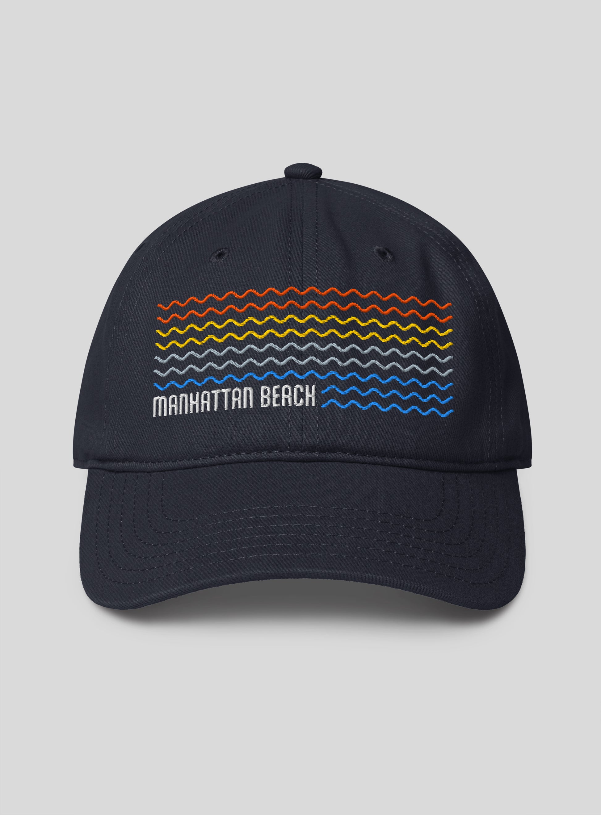 This embroidered Manhattan Beach Waves Hat brings all the coastal-sunset energy in one super clean, low-profile look. The colorful wave lines pop against the dark navy, giving it that effortless “golden hour by the pier” vibe. It’s lightweight, comfy, and perfect for beach walks, volleyball days, or just repping your favorite seaside town around town. Finished with a subtle Seaside Vibes logo on the back, it’s your new go-to cap for endless summer.