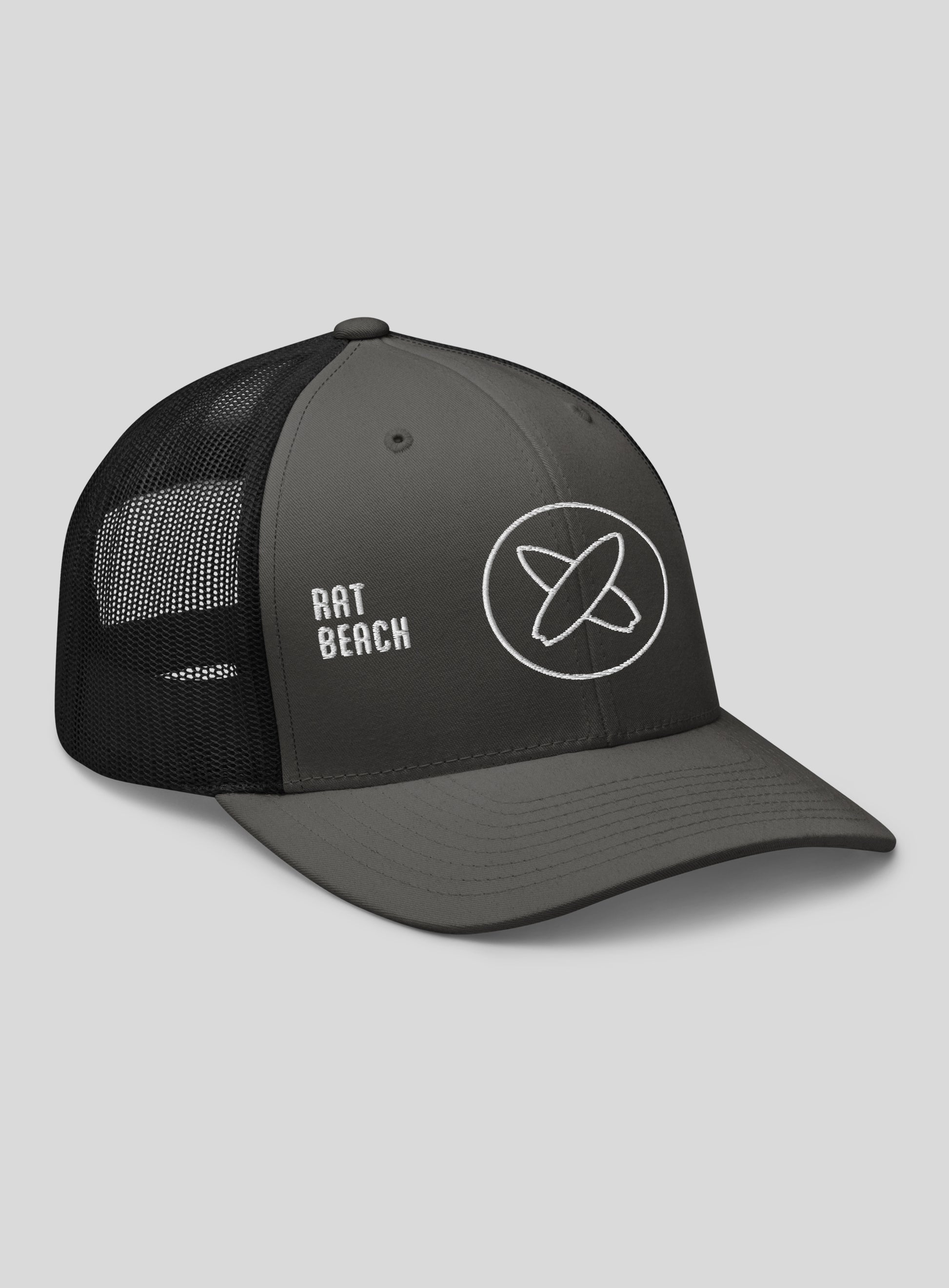 Laid-back and built for salty air days, the Rat Beach embroidered Trucker Hat brings classic coastal vibes wherever you roam. Finished in a clean charcoal with breathable mesh backing, it’s perfect for beach walks, sunset hangs, and post-surf tacos. Easygoing, timeless, and effortlessly cool, this one feels right at home by the ocean 🌊🧢
