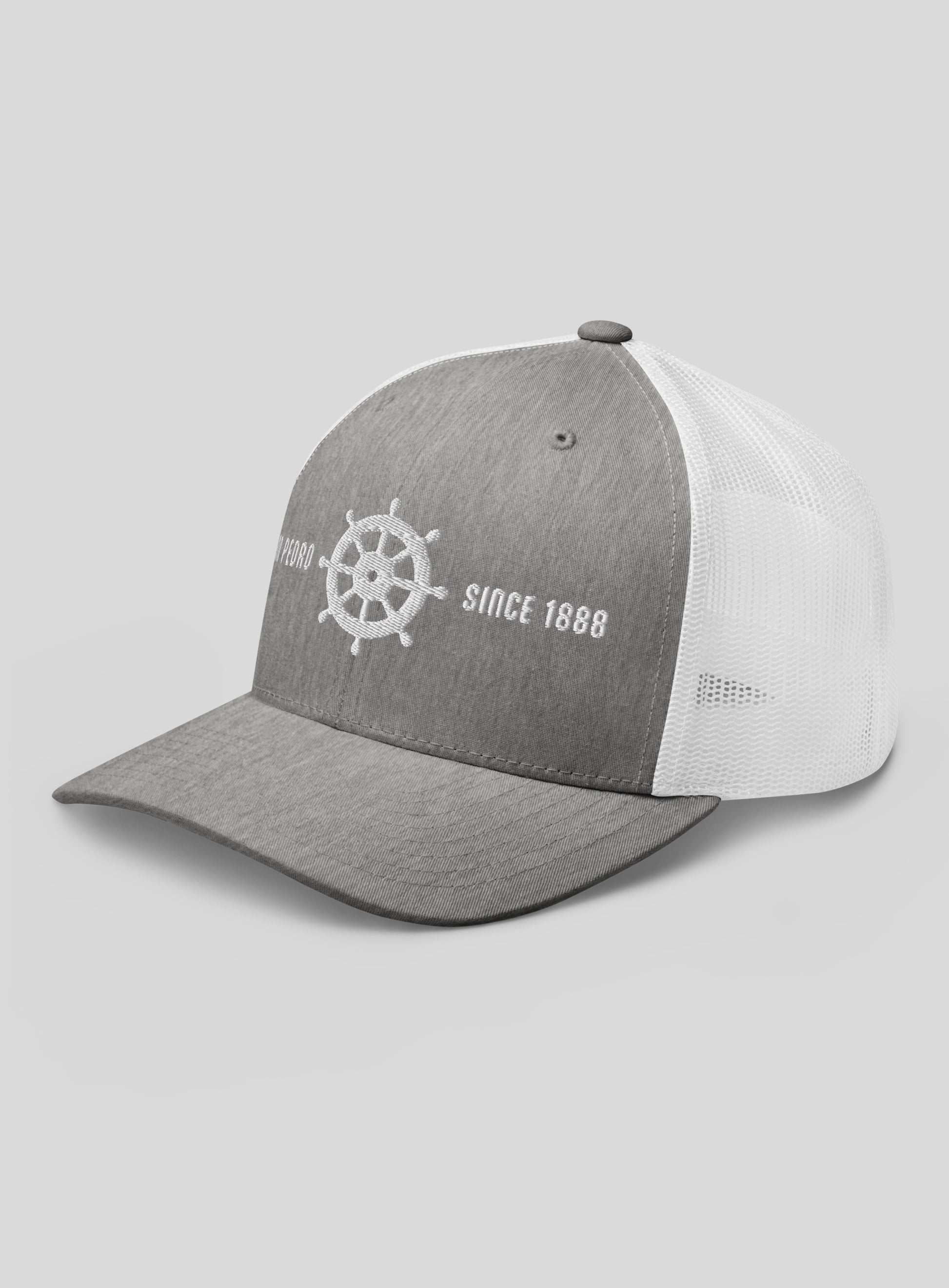 Set sail in everyday style with the San Pedro Helm Trucker Hat in Heather Grey and White. Featuring a clean embroidered ship’s wheel and a nod to San Pedro’s deep harbor roots, this hat blends coastal heritage with laid-back comfort. Breathable mesh backing and an easy snapback make it perfect for dock days, beach strolls, and post-surf tacos.
