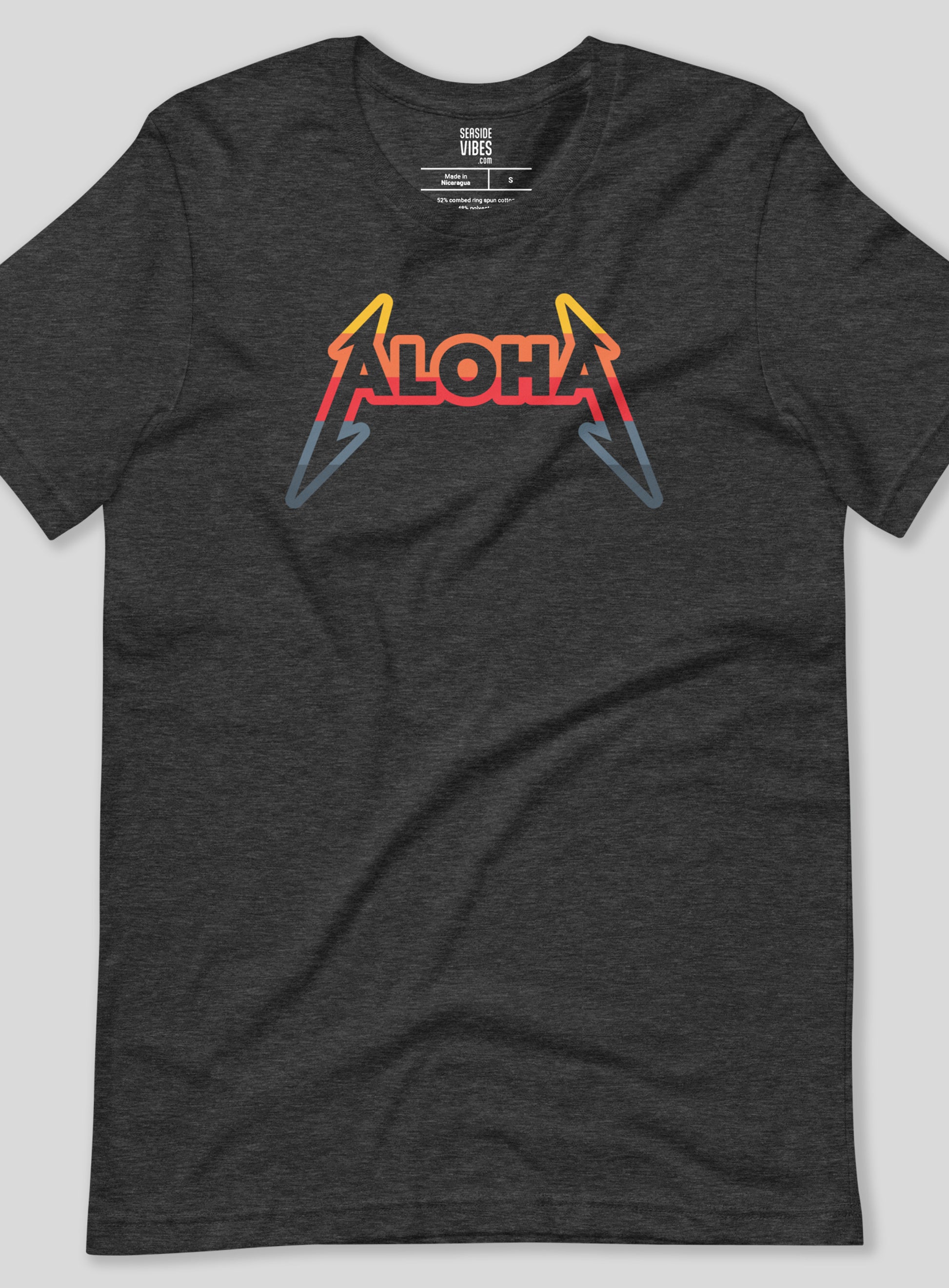 Unisex: Aloha Rocks Sunset Tee - Dark Grey Heather
