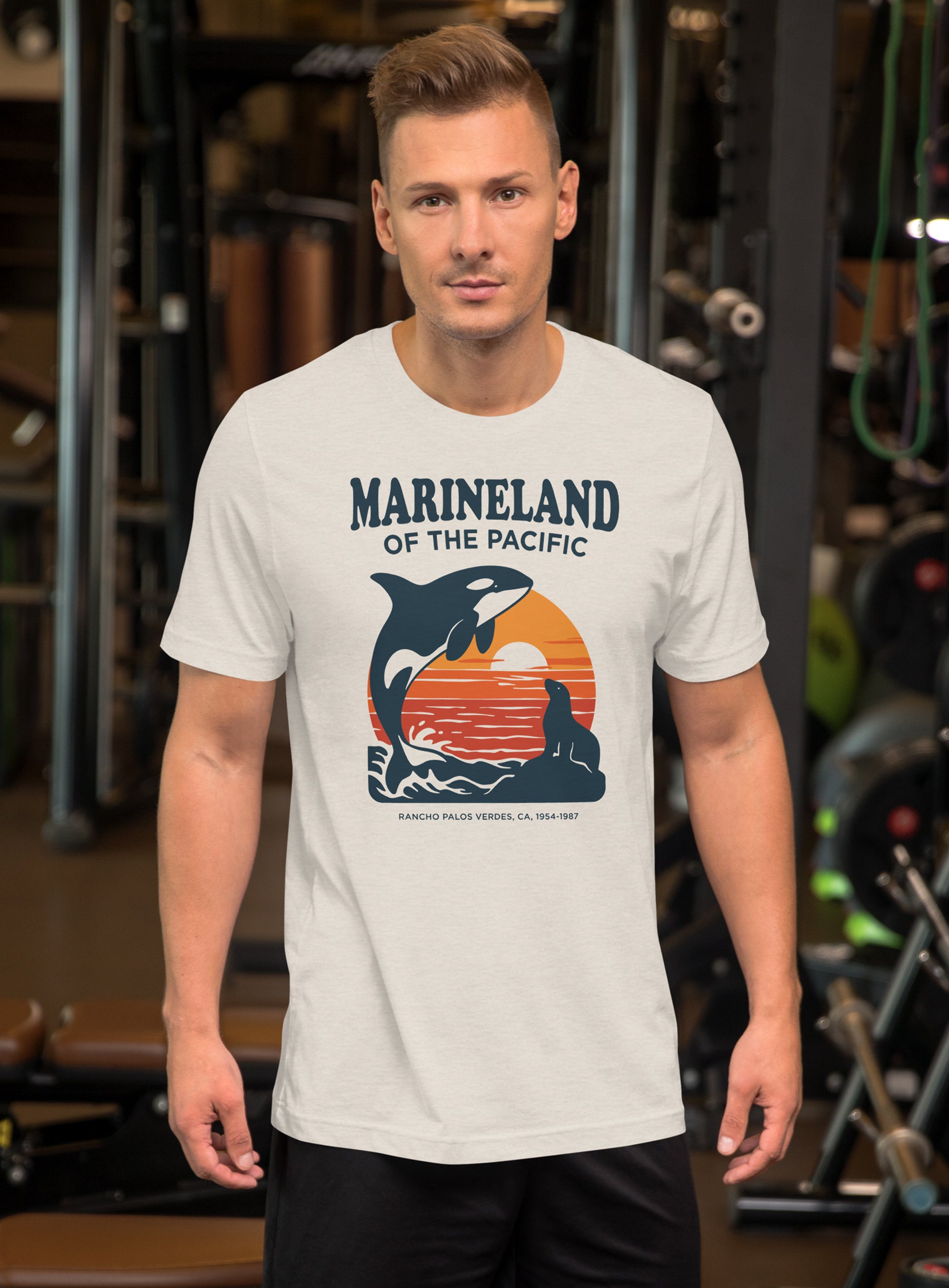 Bring back the seaside magic with this retro Marineland of the Pacific tee, featuring a bold sunset backdrop with a playful orca and sea lion. The vintage-inspired design celebrates California’s iconic oceanfront park in a timeless style. Soft, comfy, and full of coastal nostalgia, it’s the perfect shirt for beach days or casual weekends.