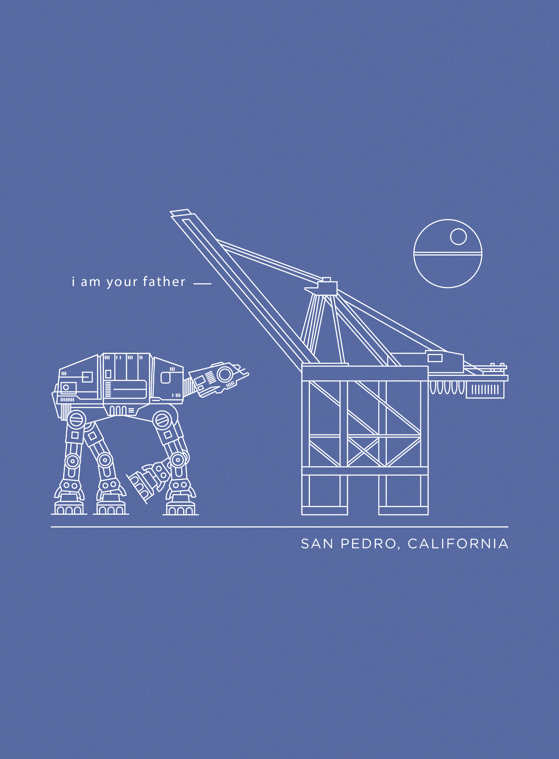 Channel your inner Jedi with this clever San Pedro tee! This design playfully nods to both Star Wars and the iconic Port of Los Angeles, featuring a cargo ship crane humorously claiming its fatherhood over an AT-AT. Perfect for sci-fi fans and locals who appreciate a good dad joke in a galaxy not so far away.