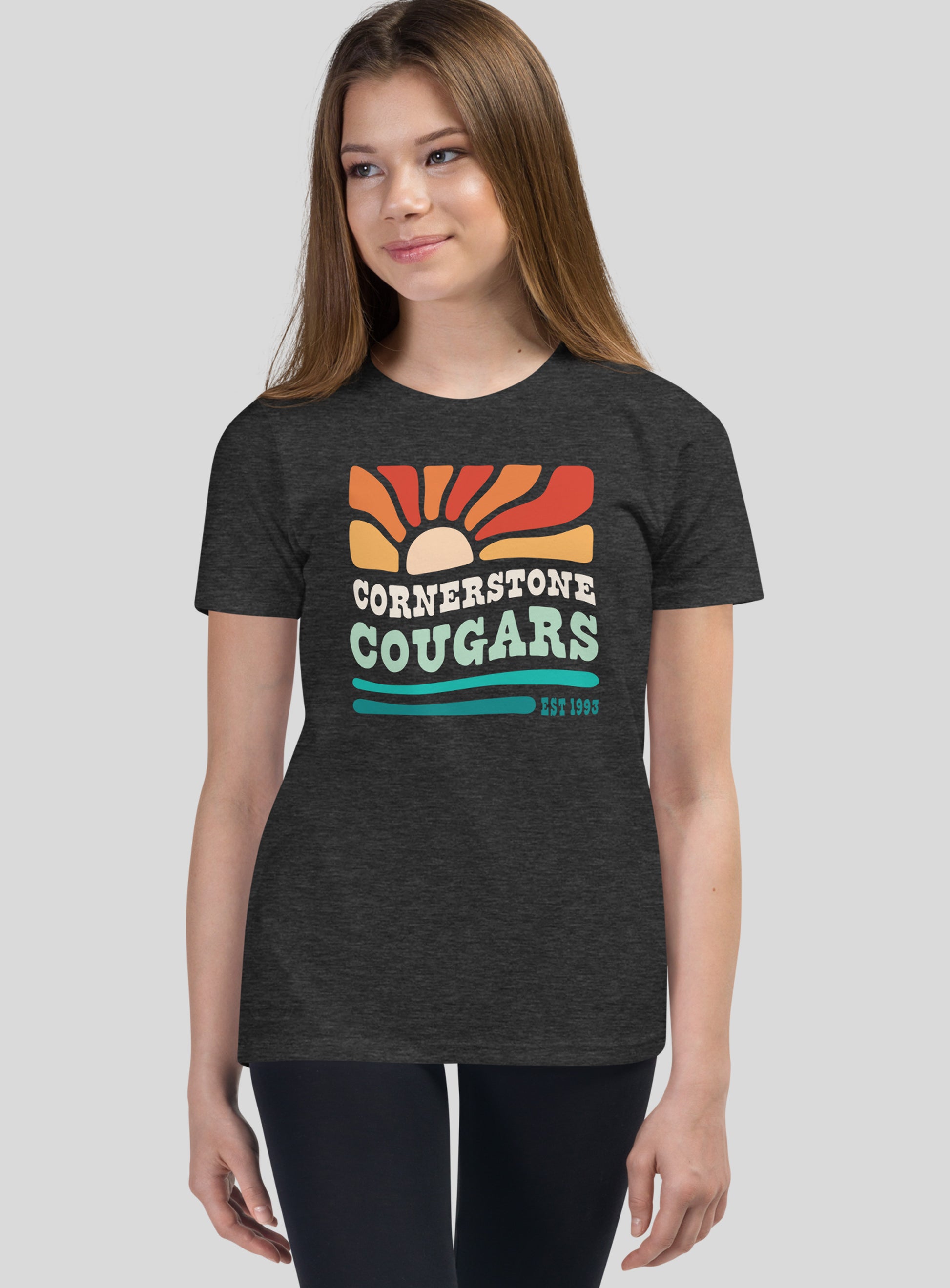 Youth: Cornerstone Cougars Beach Vibes Tee - Dark Grey Heather