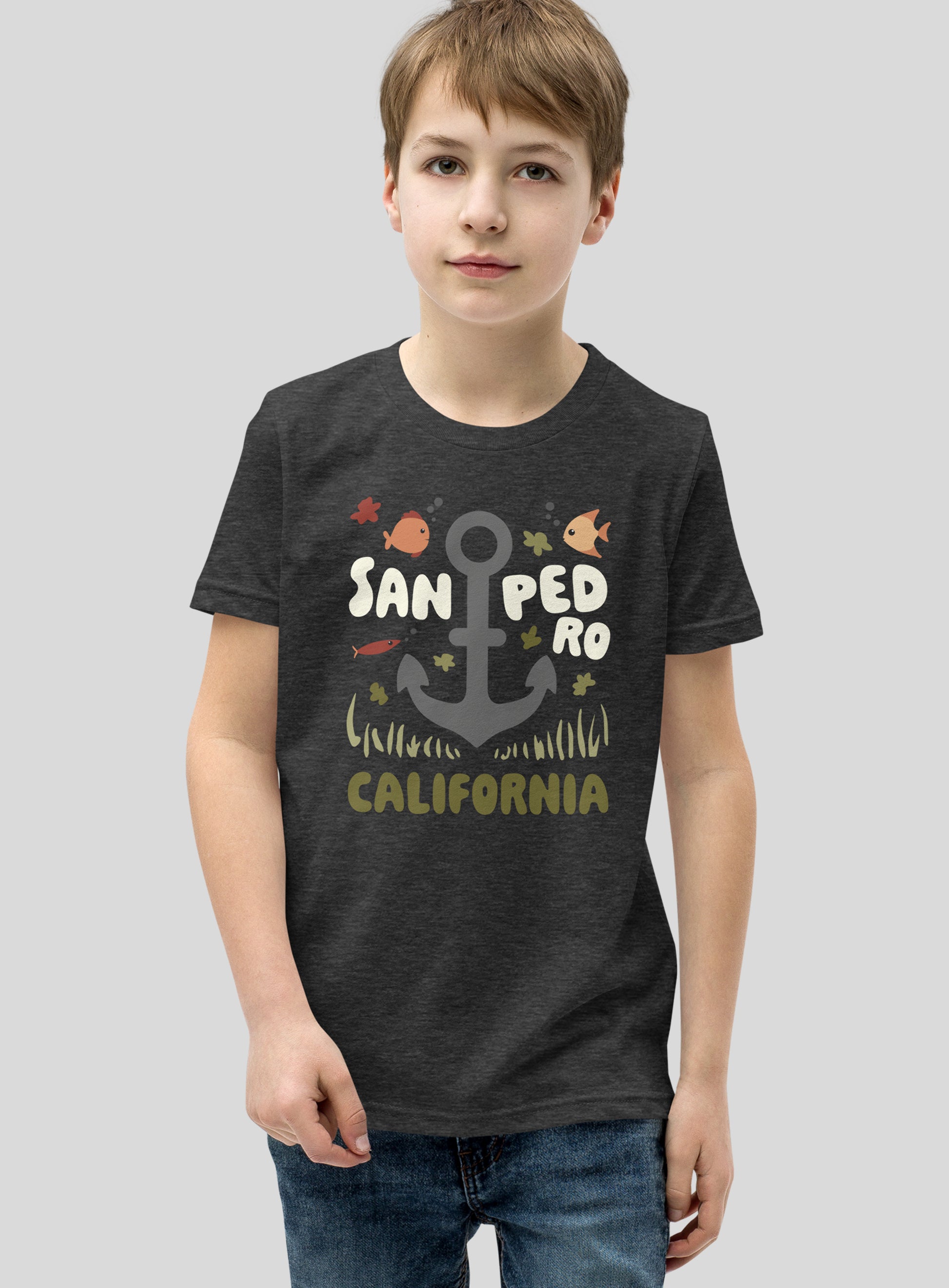 Set sail in style with our Youth: San Pedro Anchor Tee – Dark Grey Heather, a fun coastal classic made for little locals and ocean-loving adventurers. Featuring a playful anchor, colorful fish, and bold San Pedro lettering, this tee brings serious harbor vibes with a kid-friendly twist. Soft, durable, and ready for playgrounds, beach days, and family outings—it’s a go-to favorite from shore to school. 🌊⚓️