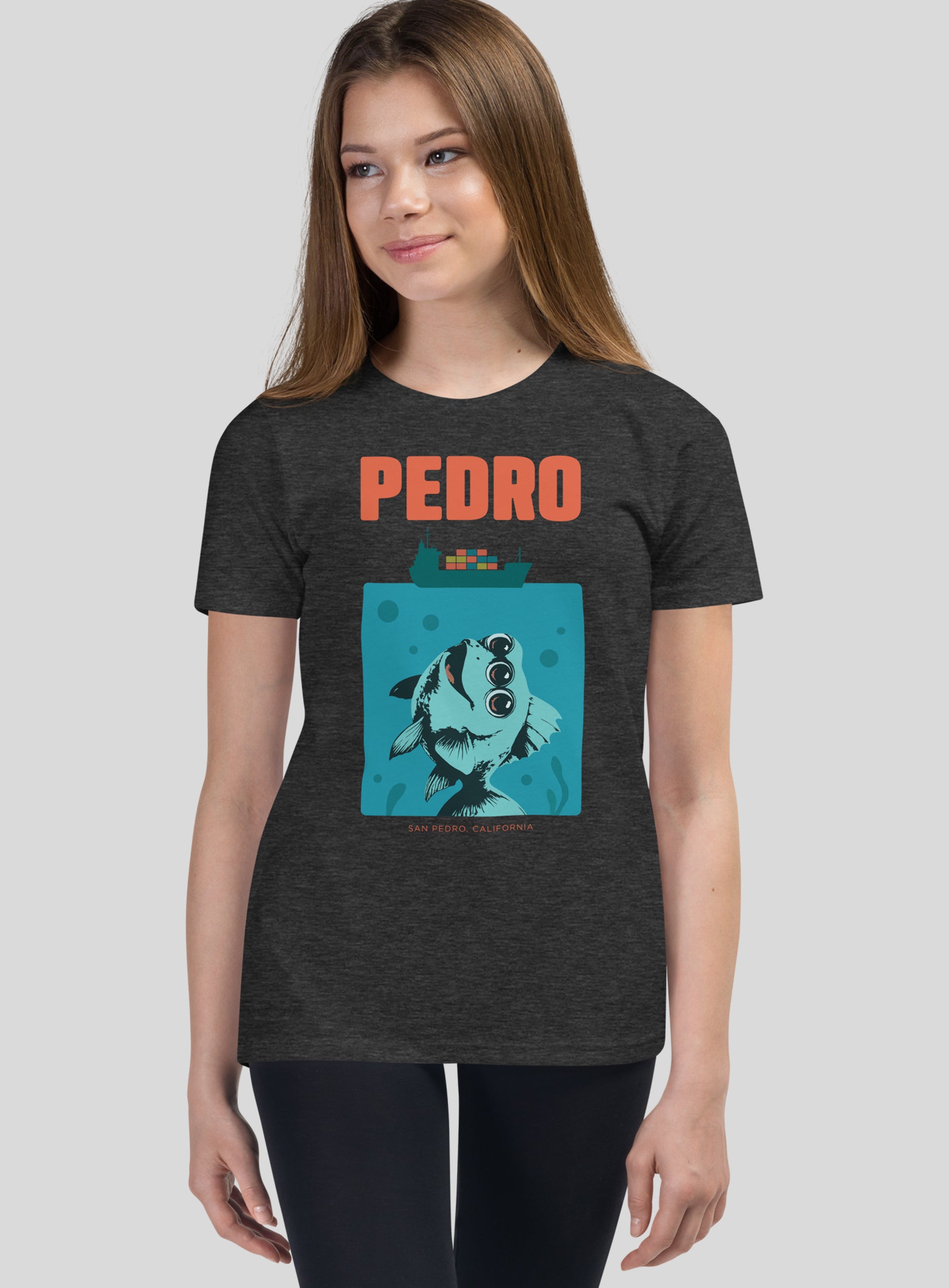 Straight out of San Pedro waters, this Jaws-inspired youth tee proves that sometimes three eyes are better than one 🦈🐟. Featuring a curious (and slightly spooky) fish cruising beneath a cargo ship, it’s a playful nod to the classic ā€œwe’re gonna need a bigger boatā€ moment. Printed on a super-soft Dark Grey Heather tee, it’s perfect for kids who love ocean vibes, movie references, and standing out from the school of fish.